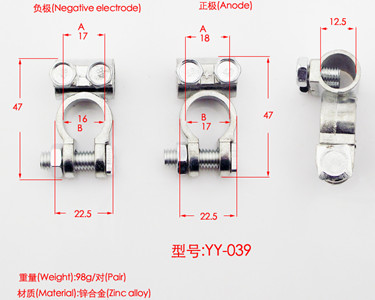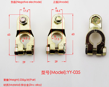 Zinc alloy battery clips are environment friendly as compared to lead battery terminals. They have more advantages as compared to lead alloys battery terminal such as increased corrosion resistance, increased electrical conductivity and lead removal costs is reduced. |