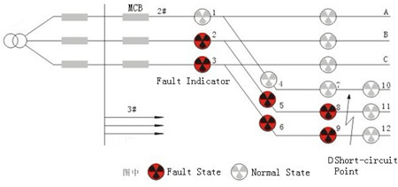 By 2 # line C is 3, 6, 9 and 12 display indicator turn red indicator is white, can be judged D failures. Application range: Mounting in long-line middle section and a branch at the entrance, can indicate the line fault and fault branch. |