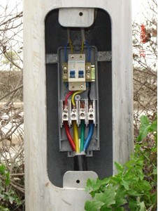 Installation Instructions: The box cover is opened, the bolts are loosened, the three Phase four wire power leading-in and leading-out thrum. Marginal layer strip around 35mm, into power Line inlet and outlet hole, screw bolts, the circuit breaker Or a fuse wire connecting terminal with street lamp, Close the box lid.